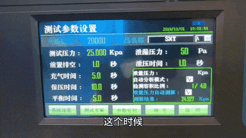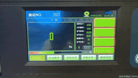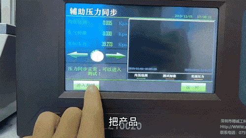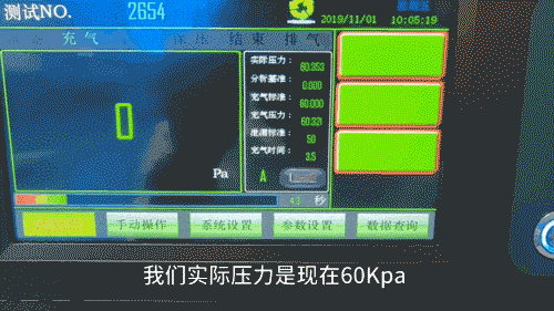 通过仪器后面的精密调压阀调整实际压力,实际压力要和充气压力非常接近,随后点击进入「进入测试」